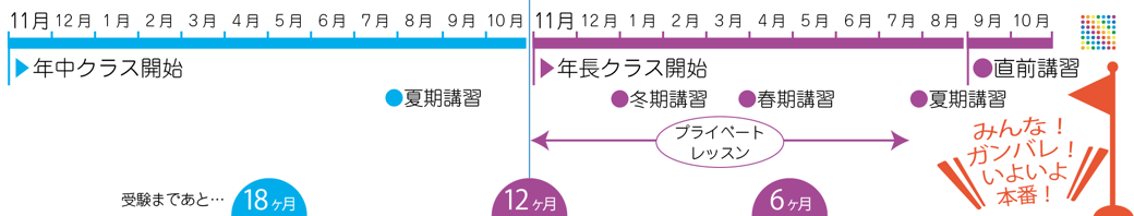 現在の小学校受験コース開講スケジュールは以下のとおりです。残席数は変動します。