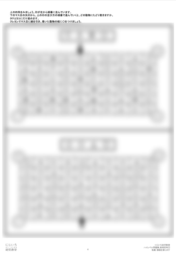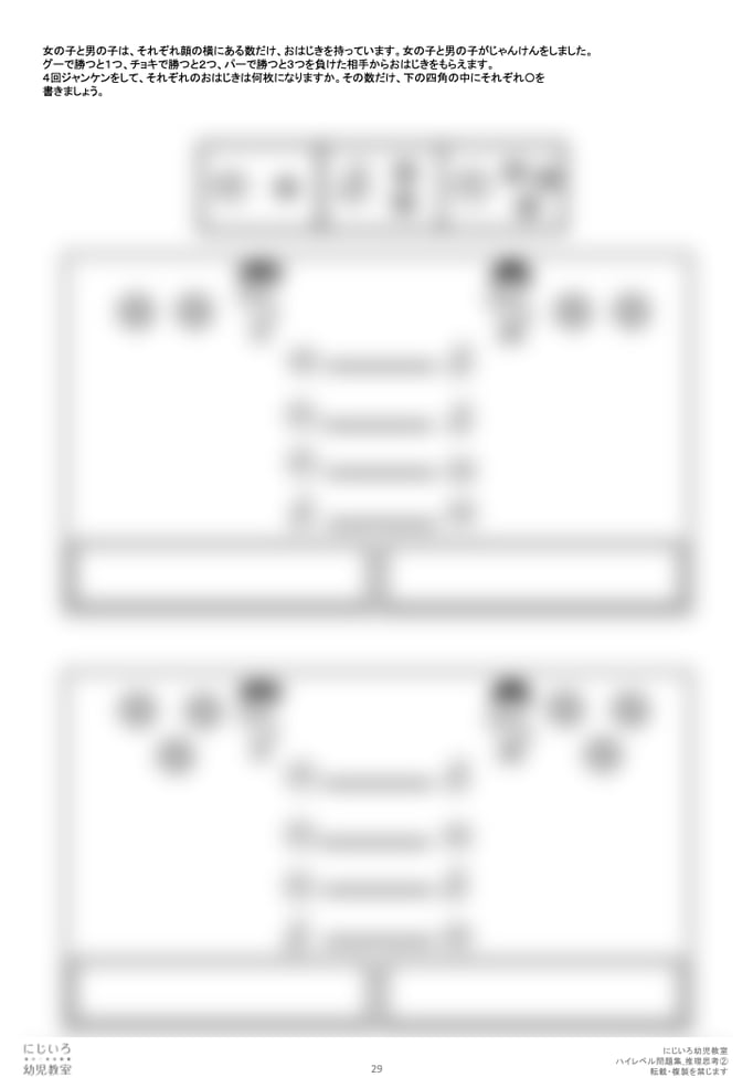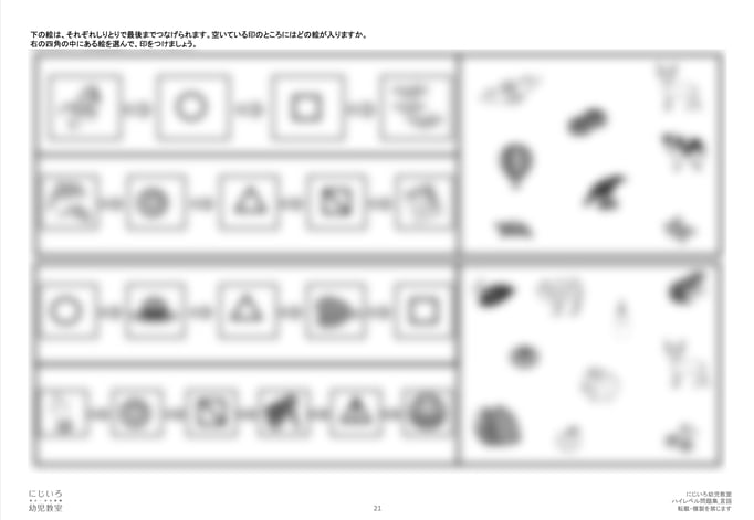 幼児教室でハイレベル問題としてチャレンジする問題内容は、ほとんどが市販の問題集では見つけられないものばかりです。
